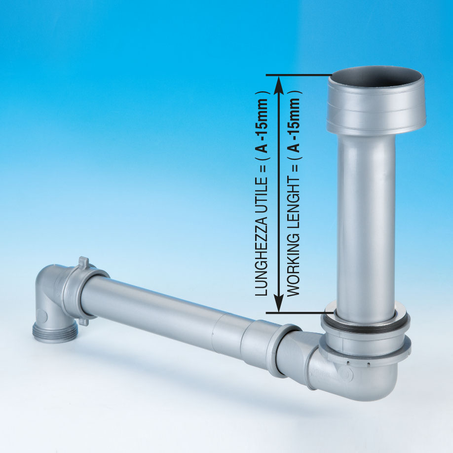 Space saver drain fitting with P.P. stand pipe for sinks with Ø 60 mm hole.