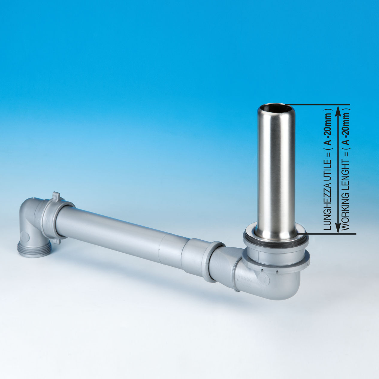 Space saver drain fitting with stainless steel stand pipe for sinks with Ø 60 mm hole.