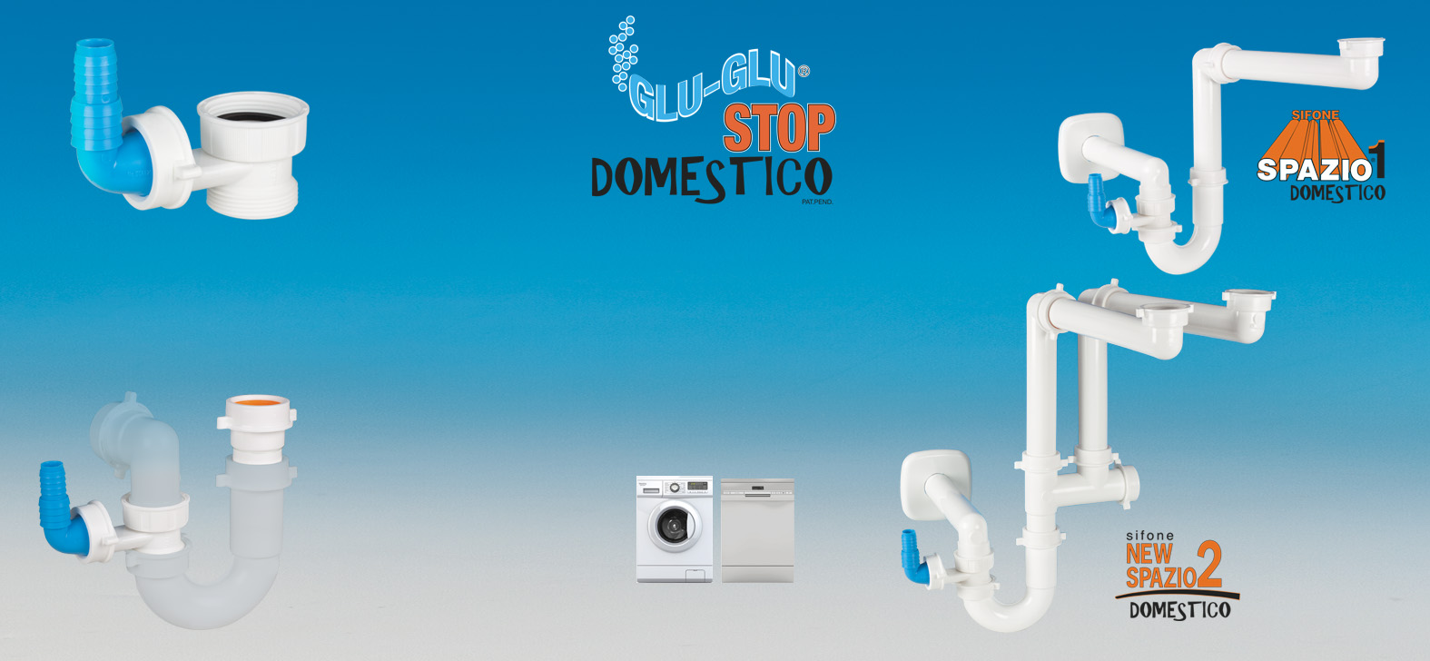 Siphon gain de place pour éviers avec deux bassins avec prise raccord Ø20-25