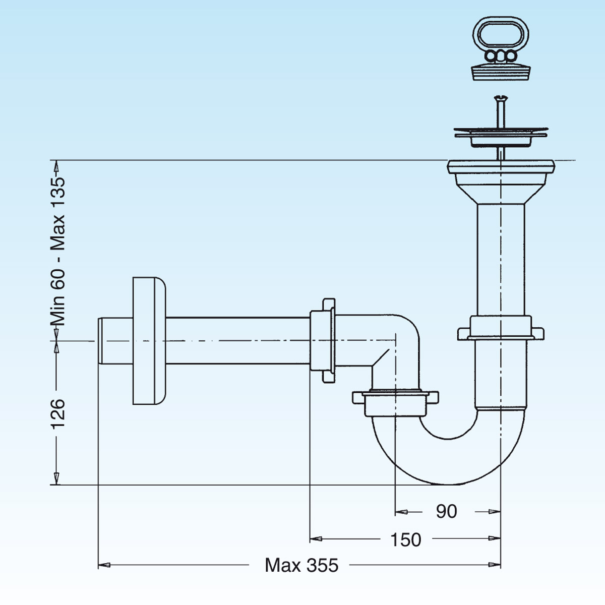 Sifoni a “TUBO” per lavelli ad una vasca, in ceramica completi di pilette (acciaio inox 18/8 - Ø 80x52) e Tappomaniglia