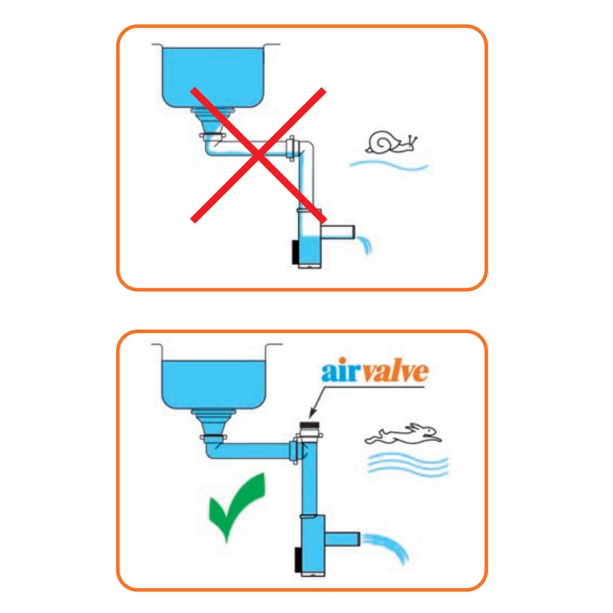 Applicata prima del sifone sotto il lavello velocizza lo scarico dellʼacqua.