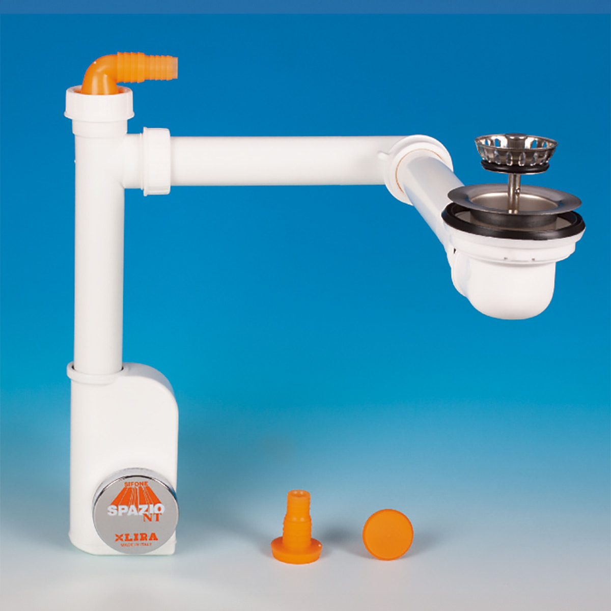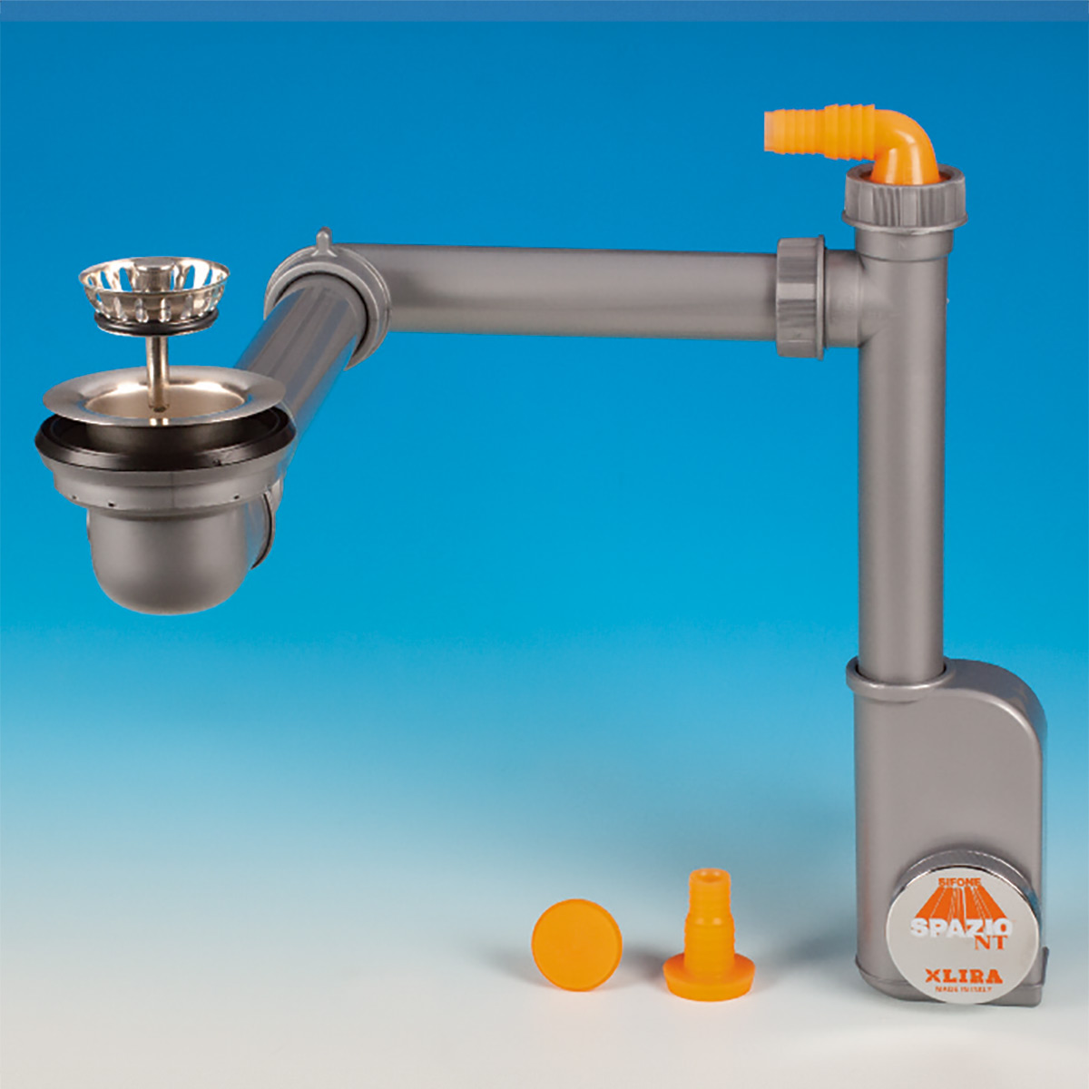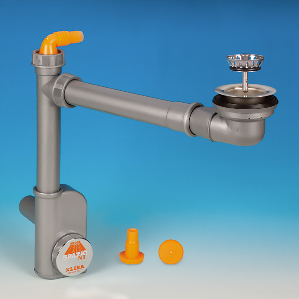 Kit sifone salvaspazio per lavello + piletta bassa per lavelli in ceramica